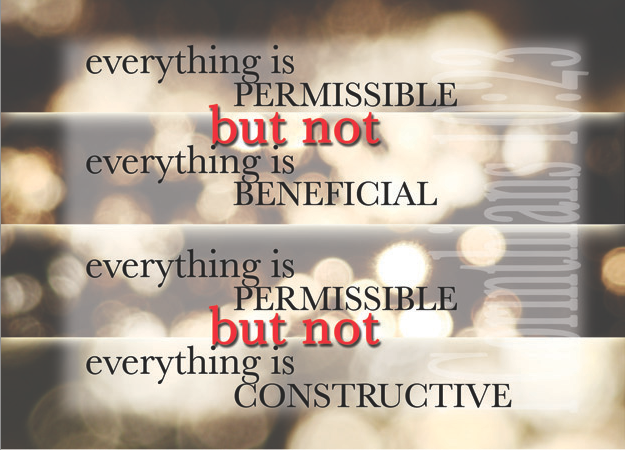 But not everything is beneficial. ‘but’ is a condition to the declaration that everything is permissible. Beneficial, or in other translations, edifying, does not refer to ourselves – it should not be out of our own benefit or to edify ourselves that we do things, but the things that we do ought to benefit and edify the Church. Most things we do tend not to edify the church.