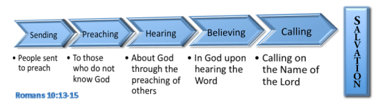 The idea that we cannot fault people for not believing if we haven’t preached to them is a reminder to us as disciples that it is our duty to preach the gospel wherever we go. I won’t go too much into the diagram above, lets leave that discussion for the study on Romans 10:14.