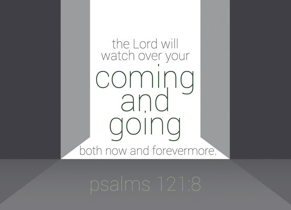 The Lord will watch over your coming and going – wherever you go, whatever you endeavour, God will watch over you. Watch over connotes protection, reassurance; and in other versions the word ‘preserve’ is used, which suggests that even in difficult times God is there to keep us going. The omnipresence of God as highlighted in Deuteronomy 28:6 – You will be blessed when you come in and blessed when you go out – is used similarly in Psalms 121:8. When we come and go – when we travel, and in a sense, whatever we do, whether in the workplace, or at home, or anywhere – we have that reassurance from God. God is always there. He is omnipresent.