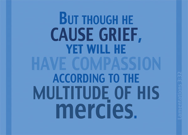 Thank God for his mercies! Behind the afflictions, there is always a larger, merciful, purpose. Our belief in God’s mercy leads us to hope, and often, we find hope in places we least expect. God is hope, and we can always find hope in Him. Even in His wrath and punishment, he retains his mercy, and we can seek hope in His promises. Even in His wrath and fury, there exists mercy, and there exists His merciful purpose. Jeremiah, even in the midst of his mourning, knew that God is merciful, and has hope in his yet-to-come deliverance. In times of grief, even if we cannot see God, let us cling on to his hand, let us cling on to his words and believe in his merciful nature. As you know, we consider blessed those who have persevered. You have heard of Job’s perseverance and have seen what the Lord finally brought about. The Lord is full of compassion and mercy [James 5:11]. No matter what kind of afflictions you suffer, persevere.