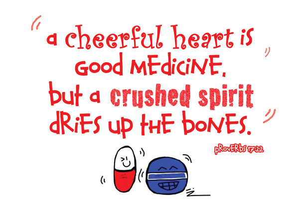 Proverbs 17:22 - A cheerful heart is good medicine, but a crushed spirit dries up the bones