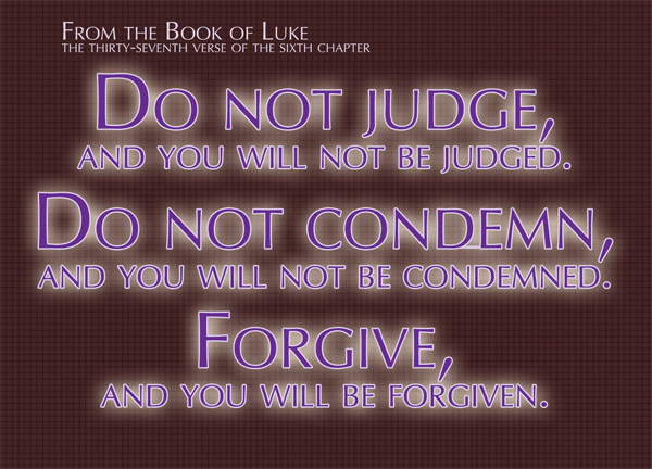 Do not judge, and you will not be judged. Do not condemn, and you will not be condemned. Forgive, and you will be forgiven.