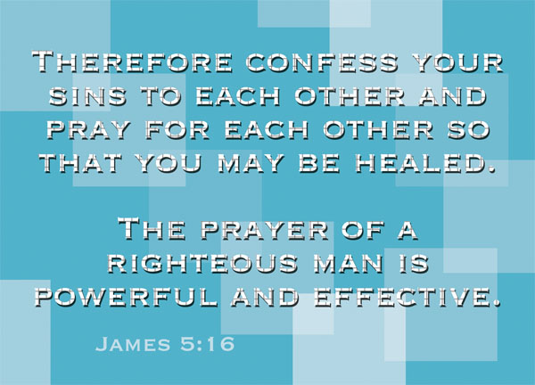 Therefore confess your sins to each other – Christianity is rather unique from many other faiths in that, there is this body of Christ, this fellowship of Christ, in which we as brothers and sisters in Christ are connected in the sense where we can easily lift people up or stumble people with our words or actions – we are held spiritually accountable to each other. This could mean sins committed against each other; or even personal sins that nobody else knows about – confess them to each other so that we can be lifted up and aided in our repentance and reconciliation with God.