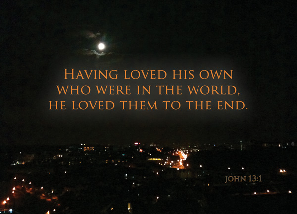 It was just before the Passover Festival. Jesus knew that the hour had come for him to leave this world and go to the Father. Having loved his own who were in the world, he loved them to the end.