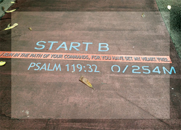 You know, I jog every morning. The picture today is of the track that I run on daily in the little park that I go to each morning – the little park just across the street from where I live. There are plenty of reasons to hinder me from being able to jog every morning – for instance, the haze is too bad this morning so I’m just holing myself up in my room now. Or sometimes I may need to work. Or I may need to be in school. Tons of reasons. Tons of distractions. Isn’t it similar to running in the path of God’s commands? We have many distractions, many temptations, many excuses that will refrain ourselves from running on the path of God’s commands. Even if you’re running, you easily get tired out, and you begin to walk, no? Paul often likened the faith to a race, and in his imagery of a race, it’s often about athleticism, about self-discipline. This verse speaks about something greater than discipline. That’s love, that’s joy, that’s peace. If something sets your heart free, won’t you feel happy doing it? Won’t you love doing it? Won’t you gain a sense of peace when doing it? Won’t you keep wanting to do it, again and again, naturally without the need of reminders, without much effort, without being distracted?