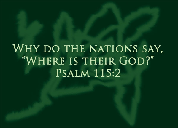 Where is their God? – let’s answer the inner-most questions first, as that will prove most telling for us. The Psalmist answered this question for us in the next verse – Our God is in heaven; he does whatever pleases him [Psalm 115:3].