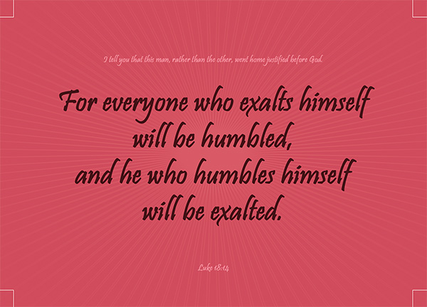 “I tell you that this man, rather than the other, went home justified before God. For everyone who exalts himself will be humbled, and he who humbles himself will be exalted.”