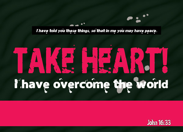 I have told you these things, so that in me you may have peace. In this world you will have trouble. But take heart! I have overcome the world.