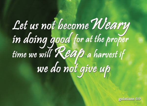 Let us not become weary in doing good, for at the proper time we will reap a harvest if we do not give up.