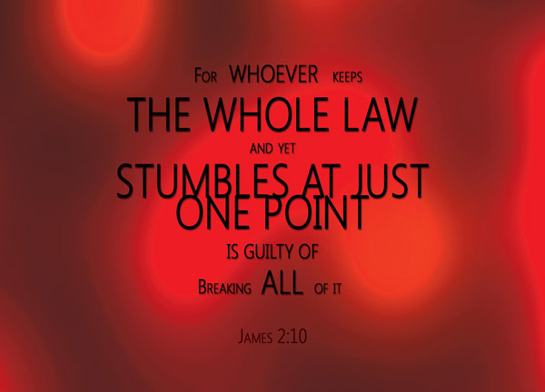 For whoever keeps the whole law and yet stumbles at just one point is guilty of breaking all of it.