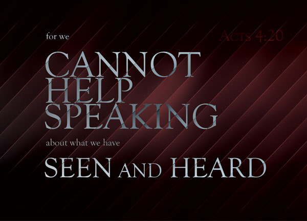 For we cannot help speaking about what we have seen and heard.