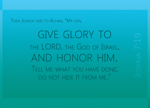 Then Joshua said to Achan, “My son, give glory to the Lord, the God of Israel, and honor him. Tell me what you have done; do not hide it from me.”