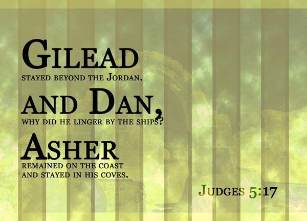 Gilead stayed beyond the Jordan – First, Gilead – by and large understood to be descendants of Manasseh, who resided east of the Jordan River. Having stayed on the other side of the river, over time they became distant from the fellowship of Israel. We see many examples of this over the course of history, when a river is signficant enough that it forms a natural territorial marker and a nationalistic divide between the two lands. While Gilead was in name still a part of Israel, they certainly had a spiritual disconnect, manifested through the physical marker – the Jordan River. So when it was time to rise up, they couldn’t.