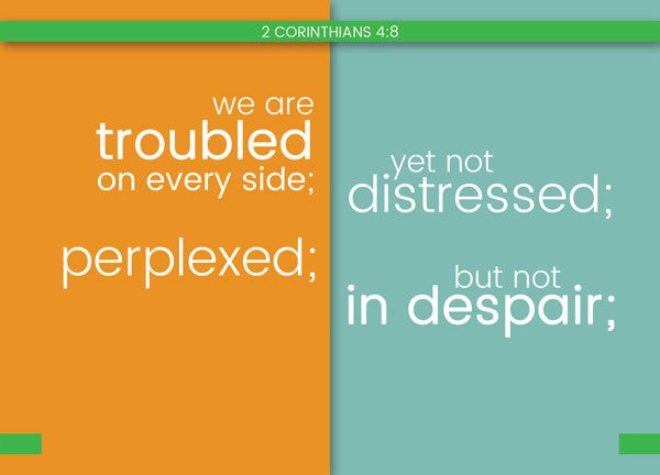 We are hard pressed on every side, but not crushed; perplexed, but not in despair;